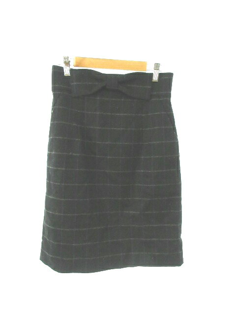 【中古】グレースクラス GRACE Class スカート ひざ丈モヘア混 フリンジ チェック柄 ツイード 黒 グレー ホワイト 白 シルバー 38 レディース 【ベクトル 古着】 191113 ベクトルプレミアム店