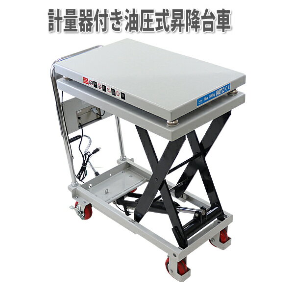 送料無料 計量器付き テーブルリフト リフトカート リフティングテーブル 油圧式 昇降台車 はかり付台車 台車はかり スチール製 ハンドリフター テーブルカート 台車 耐荷重約500kg 足踏式 重量測定 充電式 ノーパンクタイヤ 運搬台車 油圧 計量 スケール scaleliftl50