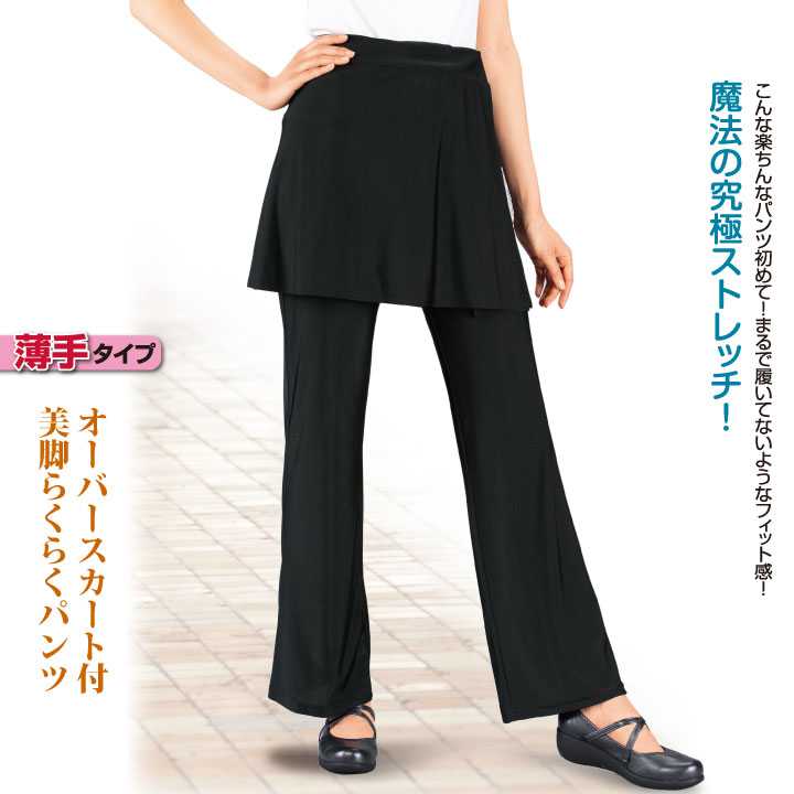 新商品 ウェスト楽々ゴム使い! ウォーキング・ヨガ・家事・ダンス・旅行・体操・介護に! オーバースカート付美脚らくらくパンツ(股下73cm)が入荷しました! 柔らかな着心地・スーパーストレッチ素材♪