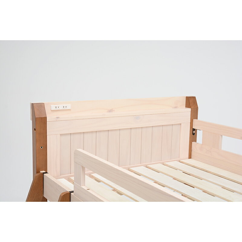【商品について】■商品サイズ(外寸)(約)幅106×奥行210×高さ122×床面高82.5cm■補足説明・床面内寸:(約)幅98×長さ197cm ・宮棚、2口コンセント付 ・組立式■成分材質主材:パイン材■その他この商品は2梱包でお届けします。