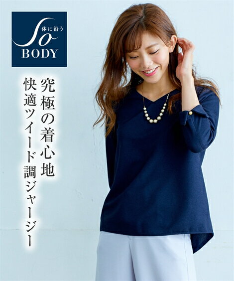 スーツ レディース SOBODY ツイード調 ジャージ Vネック前後差T ブラウス 上下別売り オフィス グレー系/ネイビー系 S/M/L ニッセン nissen
