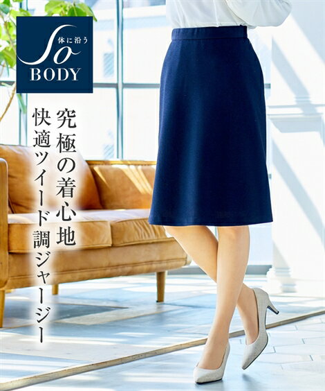 スーツ レディース SOBODY ツイード調 ジャージ セミフレア スカート 上下別売り オフィス グレー系/ネイビー系 S/M/L ニッセン nissen